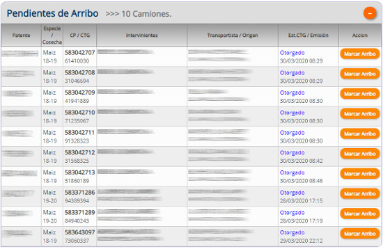 Camiones a los que se ha tramitado el CTG en AFIP pero todavía no llegaron a planta.