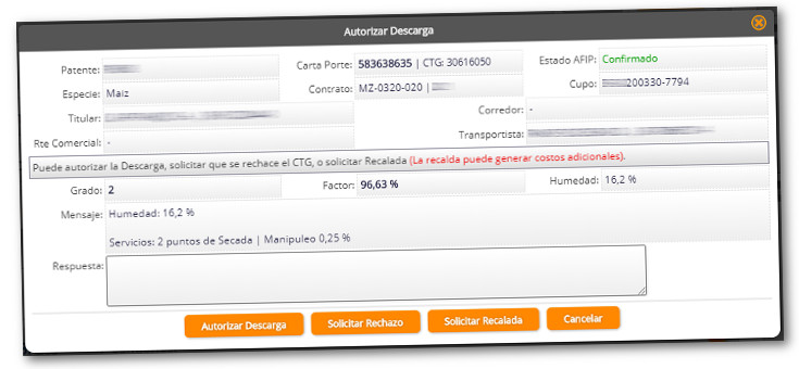 Además de acuerdo a las variables de Autorización y Rechazo al momento de cargar la calidad, si necesita ser rechazada se le informa a los usuarios internos que hay una carta de porte pendiente de rechazo, y si necesita ser autorizada envía el mail directamente al cliente/corredor para solicitar su autorización para descargar.