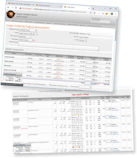 Además también visualiza la información de las lecturas de comederos, stock actual, raciones de los últimos días, movimientos de corral y datos de lo presupuestado y el desvío correspondiente al presupuesto para facilitar la definición de cuantos kilos se necesitan en el corral en cada turno.