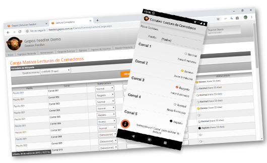 Las lecturas se pueden cargar individualmente desde la app móvil, o masivamente desde el sistema (el operario va a los corrales con el impreso del reporte de recorrido, realiza las lecturas y otras tareas, y después las vuelca masivamente en el sistema).