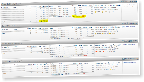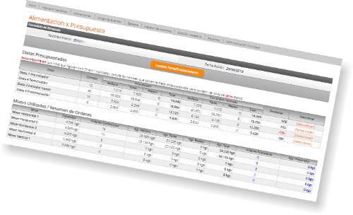 Esta funcionalidad nos permite de forma ágil, definir que ración (dieta y kilos) dar de comer en los corrales analizando al mismo tiempo todas las variables relevantes.
