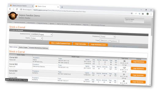 En el resto de los caso, ya sea con identificación por tropa o identificacion individual con caravanas numeradas, los movimientos de corral se realizan por tropa y sexo de los animales indicando la cantidad que se movieron, para simplificar la carga.